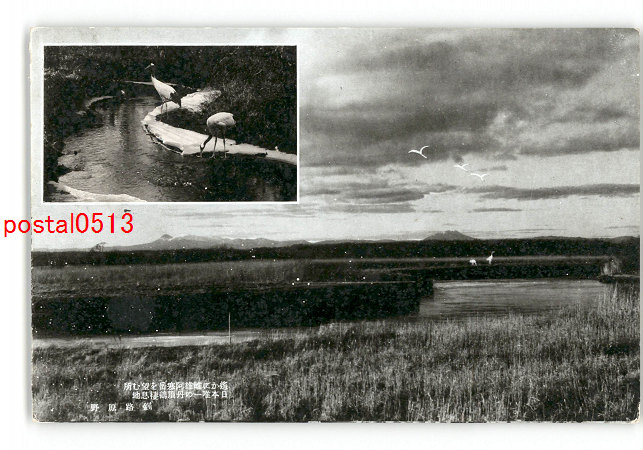 北海道 遙かに雌雄阿寒岳を望む所 日本唯一の丹頂鶴楼息地 釧路原野 *傷み有り