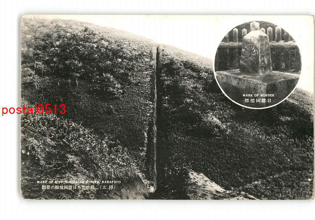 樺太 日露国境標 樺太 截然たる日露国境線の景観 *傷み有り