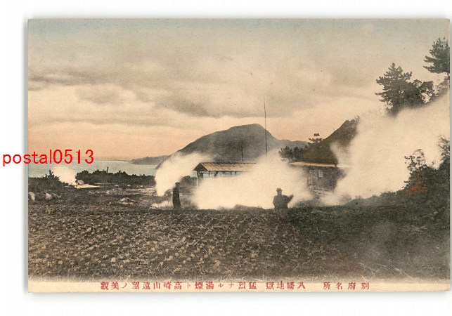 大分 手彩色 別府名所 八幡地獄 猛烈なる湯煙と高崎山遠望の美観 *傷み有り