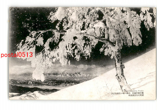 長野 雪の菅平風景 白樺へ咲いた樹氷より覗見せる妙高連峰 *傷み有り