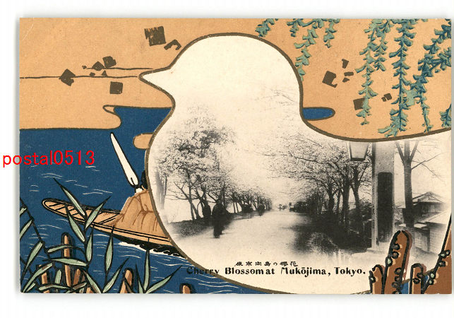 東京 名勝とアート絵葉書 向島の桜 *傷み有り