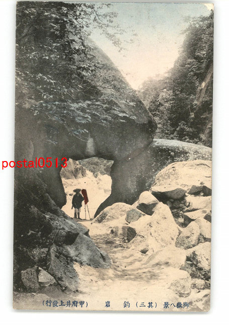 山梨 手彩色 御嶽八景 その3 釣岩 *傷み有り