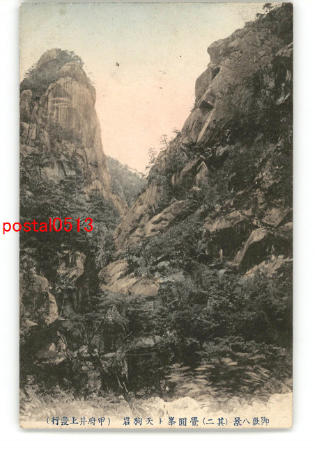 山梨 手彩色 御嶽八景 その2 覚円峯と天狗岩 *傷み有り