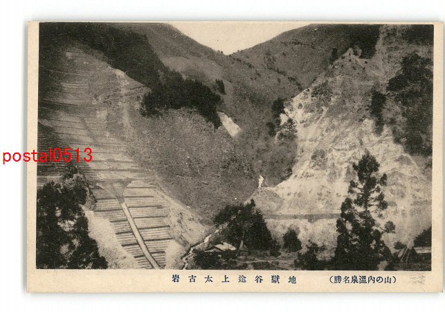 長野 山の内温泉名勝 地獄谷途上太古岩 *傷み有り