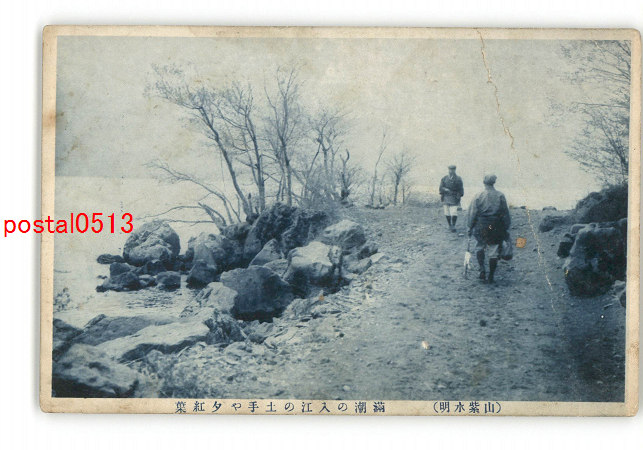 山紫水明 満潮の入江の土手や夕紅葉 *傷み有り