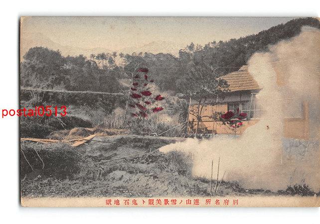 大分 手彩色 別府名所 連山の雪景美観と鬼石地獄 *傷み有り