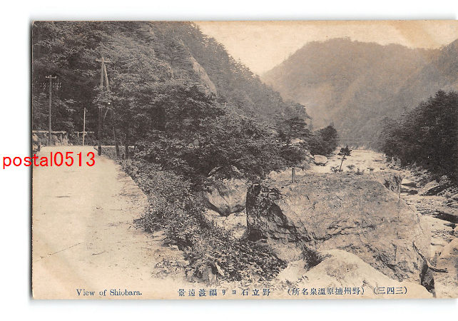 栃木 野州塩原温泉名所 野立石より福渡遠景 *傷み有り