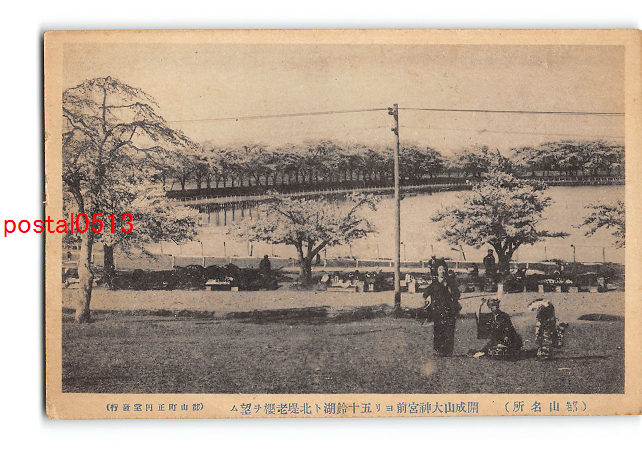 福島 郡山名所 開成山大神宮前より五十鈴湖と北堤老桜を望む *傷み有り