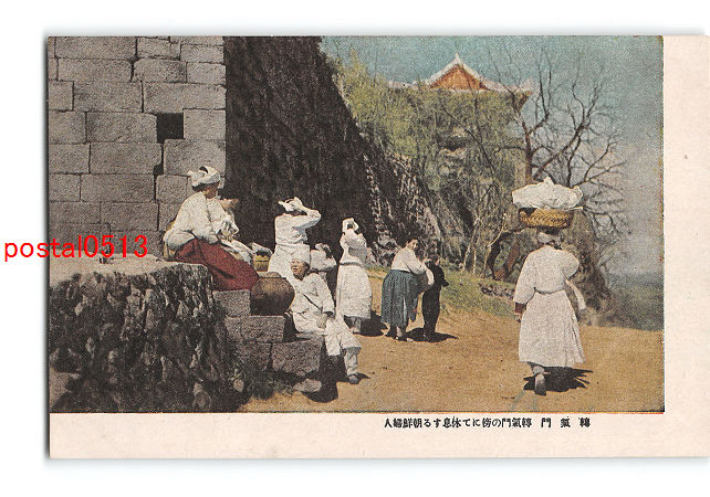 朝鮮 転気門 転気門の傍にて休息する朝鮮婦人 *傷み有り