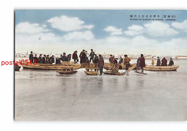 満州 哈爾賓 冬季松花江上の橇