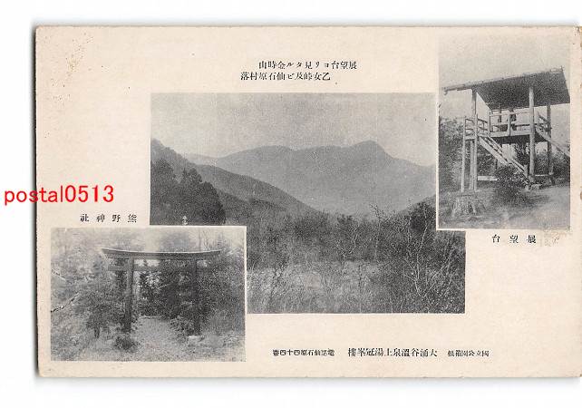 神奈川 大涌谷温泉上湯冠峯楼 展望台 熊野神社 展望台より見たる金時山 乙女峠及び仙石原村落