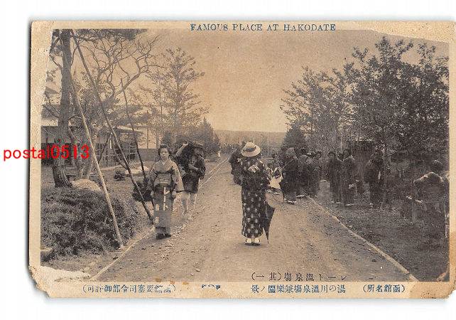 北海道 レート温泉場 その1 函館名所 湯の川温泉場兼楽園の景 実逓便エンタイア *傷み有り