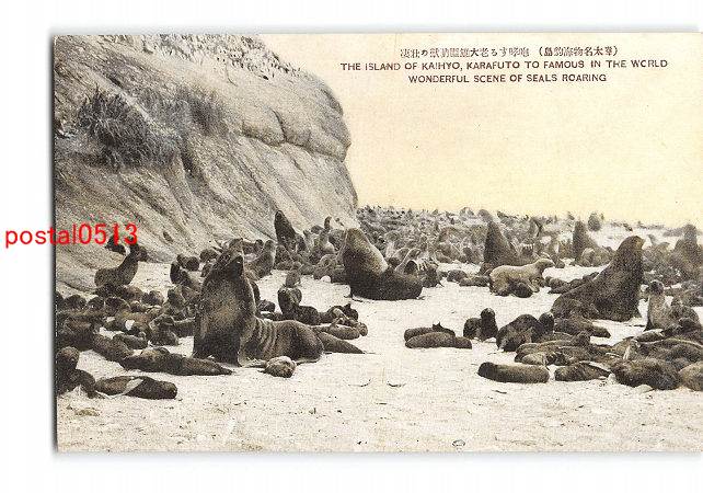 樺太 樺太名物海豹島 咆哮する老大雄膃肭獣の壮凄