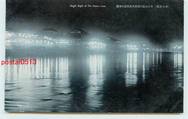 京都 夜の加茂川四條大橋付近