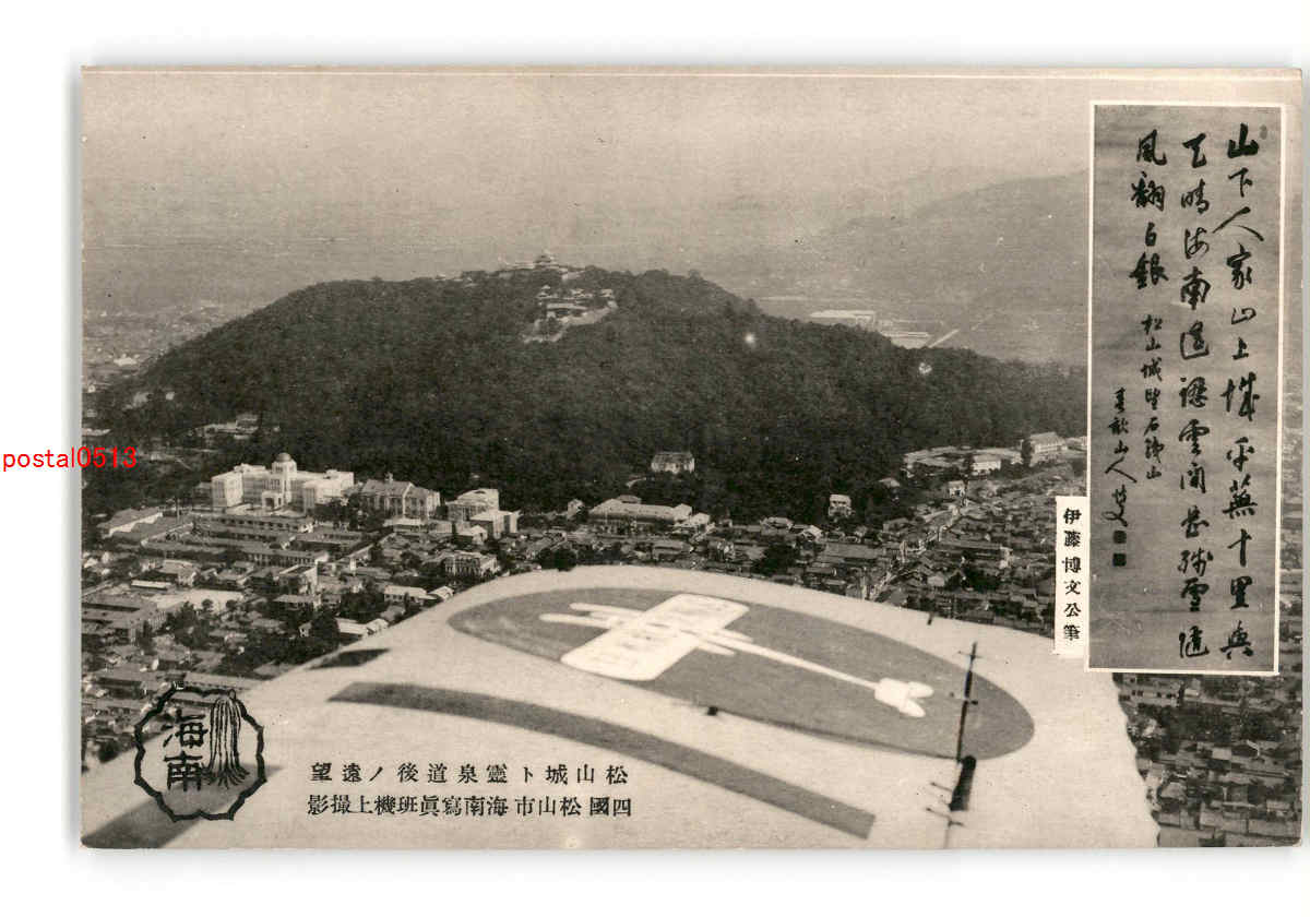 愛媛 松山城と霊泉道後の遠望 *傷み有り