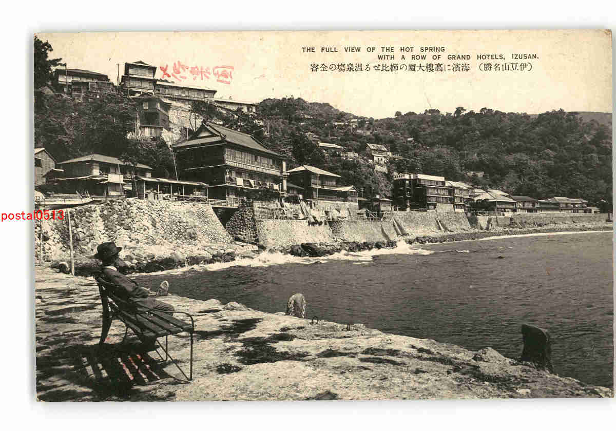 静岡 伊豆山名勝 海浜に高楼大廈の櫛比せる温泉場の全容 *傷み有り