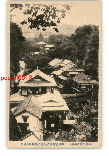 福島 飯坂温泉 赤川筋各温泉を隔て鵬城址を望む *傷み有り