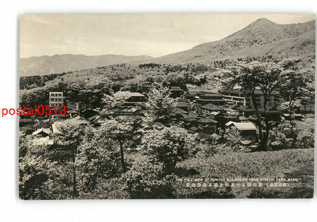 栃木 那須温泉 東公園より見たる湯本温泉全景 *傷み有り