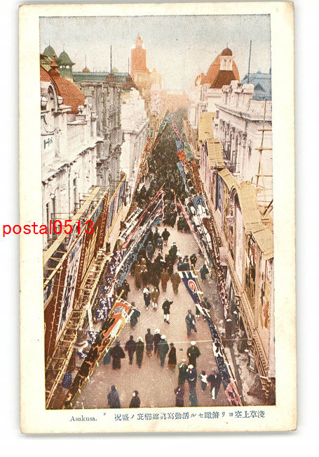 東京 浅草上空より俯瞰せる活動写真館櫛庇の盛況 *傷み有り