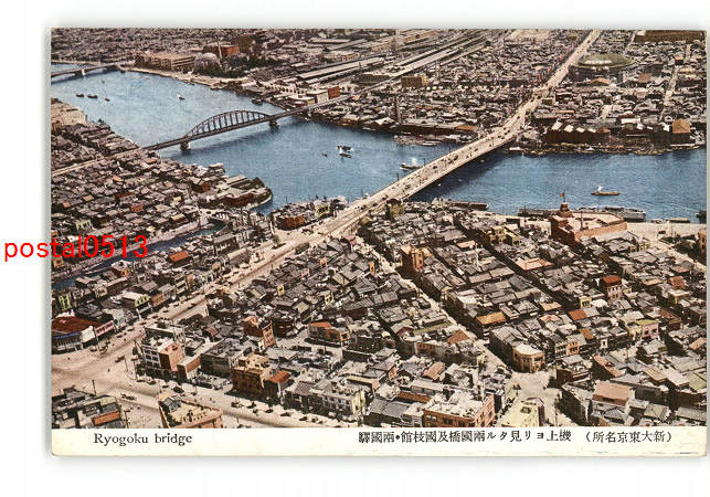 東京 新大東京名所 機上より見たる両国橋及国技館 両国駅 *傷み有り