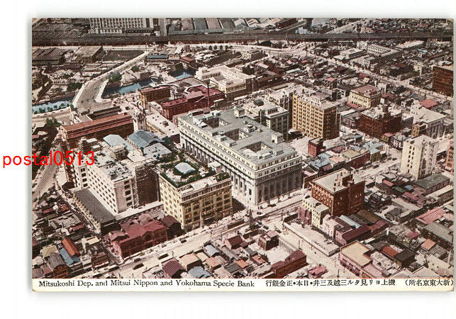 東京 新大東京名所 機上より見たる三越及三井 日本 正金銀行 *傷み有り