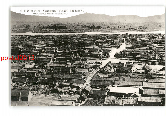 満州 吉林名勝 山紫水明一幅の絵の如き 吉林市街全景 *傷み有り