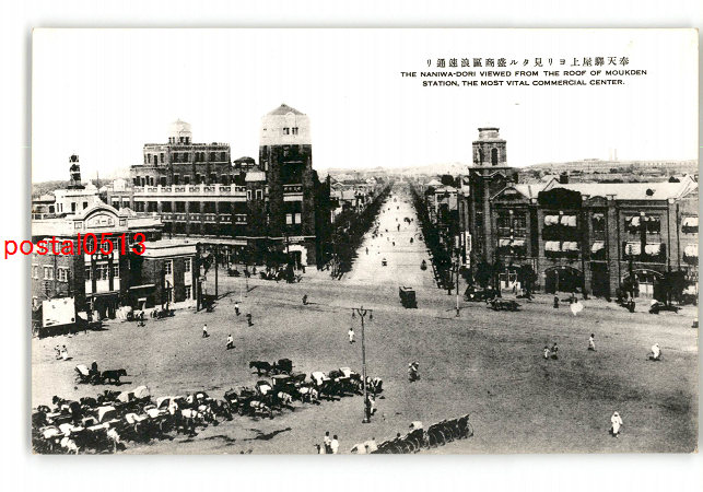 満州 奉天駅屋上より見たる盛商区浪速通り *傷み有り
