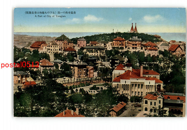 満州 青島市街の一部 右下の大建物は青島医院 *傷み有り