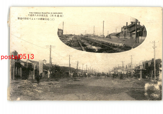 満州 北満名所 北安鎮日本人街通り 上 北安鎮駅ホームより広野の遠望 *傷み有り
