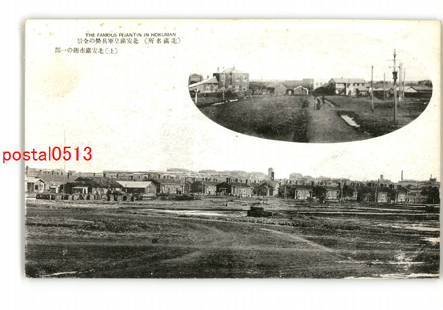 満州 北満名所 北安鎮皇軍兵営の全景 上 北安鎮市街の一部 *傷み有り