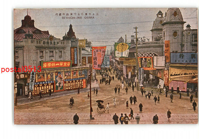 大阪 上より見たる千日前の盛況 *傷み有り