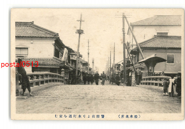 長野 松本名所 警察前より本町通を望む *傷み有り
