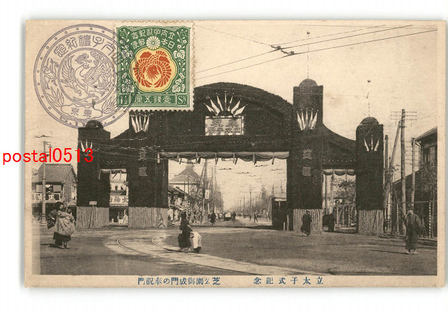 東京 立太子式記念 芝公園御成門の奉祝門 *傷み有り