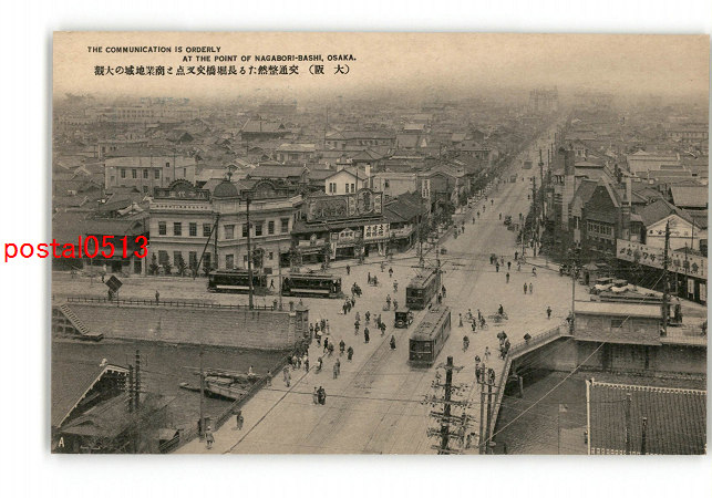 大阪 交通整然たる長堀橋交叉点と商業地域の大観 *傷み有り