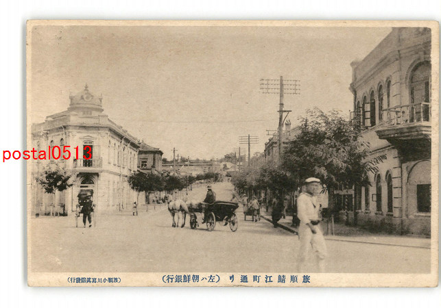 満州 旅順鯖江町通り 左は朝鮮銀行 *傷み有り