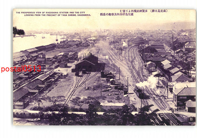 鹿児島 鹿児島名勝 多賀神社境内より望む 鹿児島駅構内及市街の盛観 機関車 *傷み有り