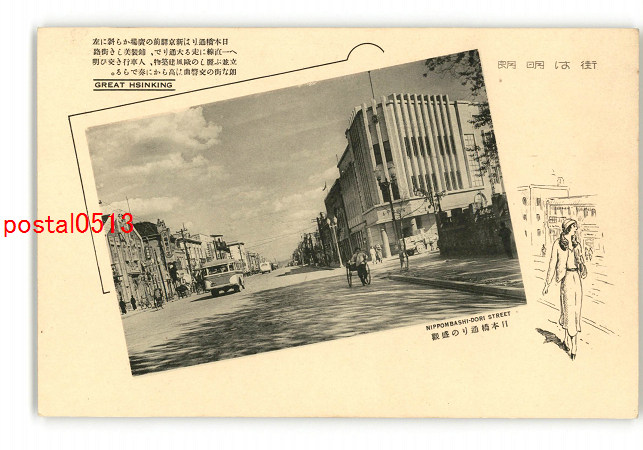 満州 新京 街は明朗 日本橋通りの盛観 *傷み有り
