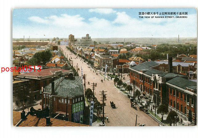 満州 奉天名所 波速通りより奉天駅を望む 右前中央郵便局 *傷み有り
