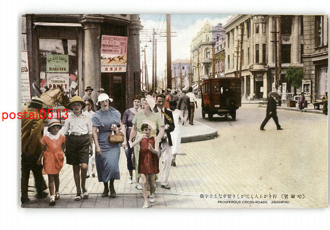 満州 哈爾浜 行きかふ人も忙がしき繁華なる十字街 *傷み有り
