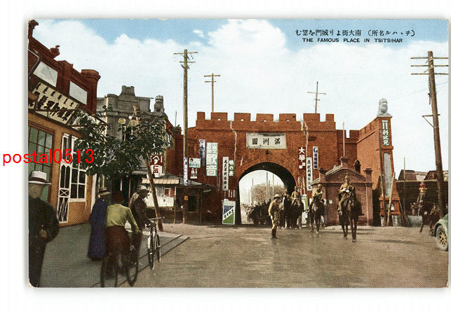 満州 チチハル名所 南大街より城門を望む *傷み有り