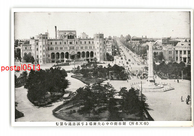 満州 奉天名所 新市街の中心大広場より浪速通を望む *傷み有り