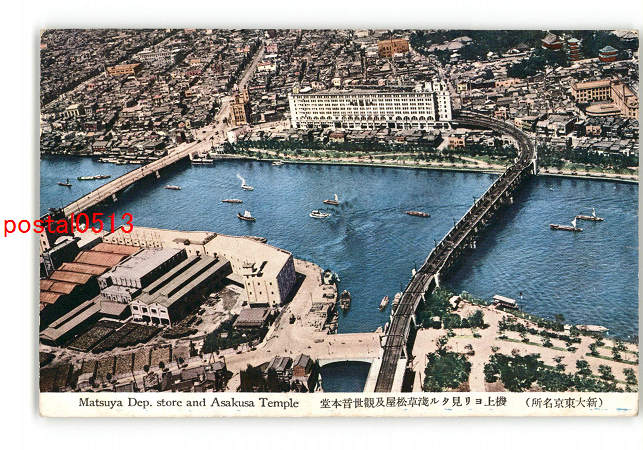 東京 新大東京名所 機上より見たる浅草松屋及観世音本堂 *エンタイア *傷み有り