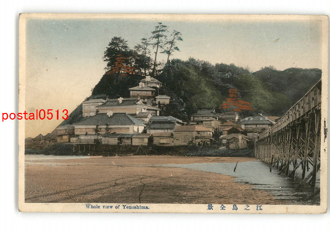 神奈川 手彩色 江ノ島全景 *傷み有り