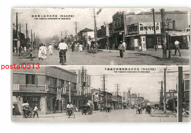満州 牡丹江名所 牡丹江半島人繁華街 牡丹江名所 牡丹江金鈴街連鎖店前通り *傷み有り