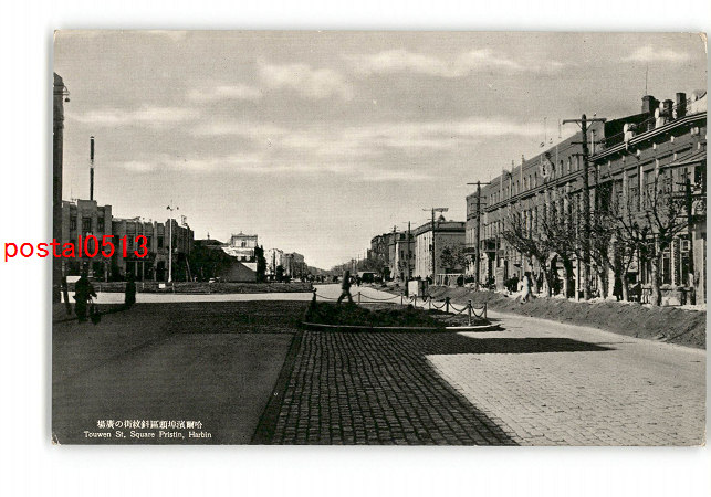 満州 哈爾浜埠頭区斜紋街の広場 *傷み有り