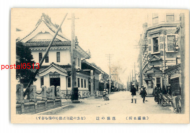 宮城 仙台名所 芭蕉の辻 左方の建物は往時の悌を存す *傷み有り