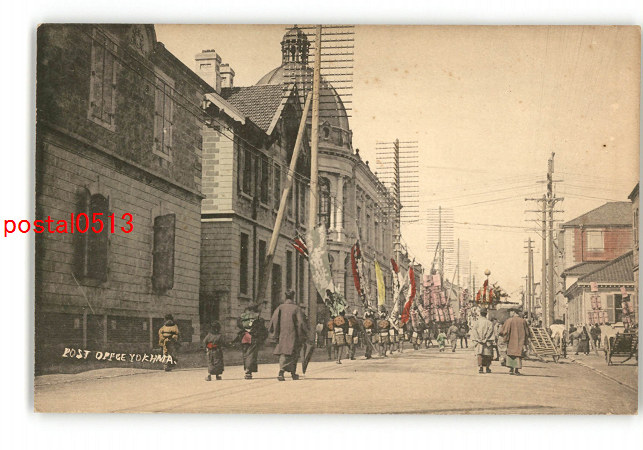 神奈川 手彩色 横浜郵便局付近 お祭り? *傷み有り