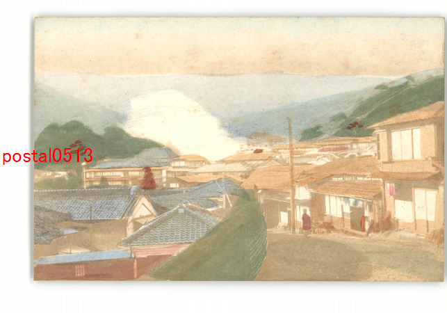 温泉市街 場所不明 手彩色 *傷み有り