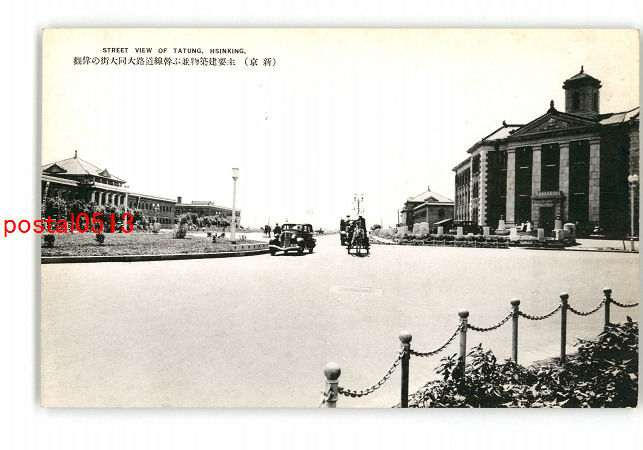 満州 新京 主要建築物並ぶ幹線道路大同大街の偉観 *傷み有り