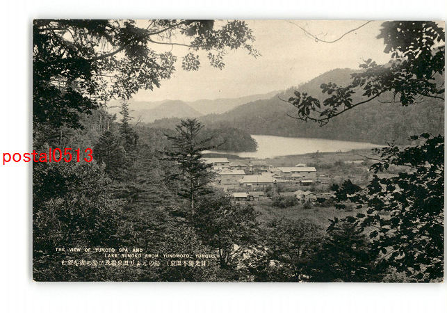 栃木 日光湯本温泉 湯の元より温泉場及び湯の湖を望む *傷み有り